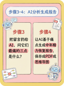 出来结果后,让ai基于痛点,生成一份详细的中年精力恢复报告,出来结果,保存成PDF,或者思维导图。 -